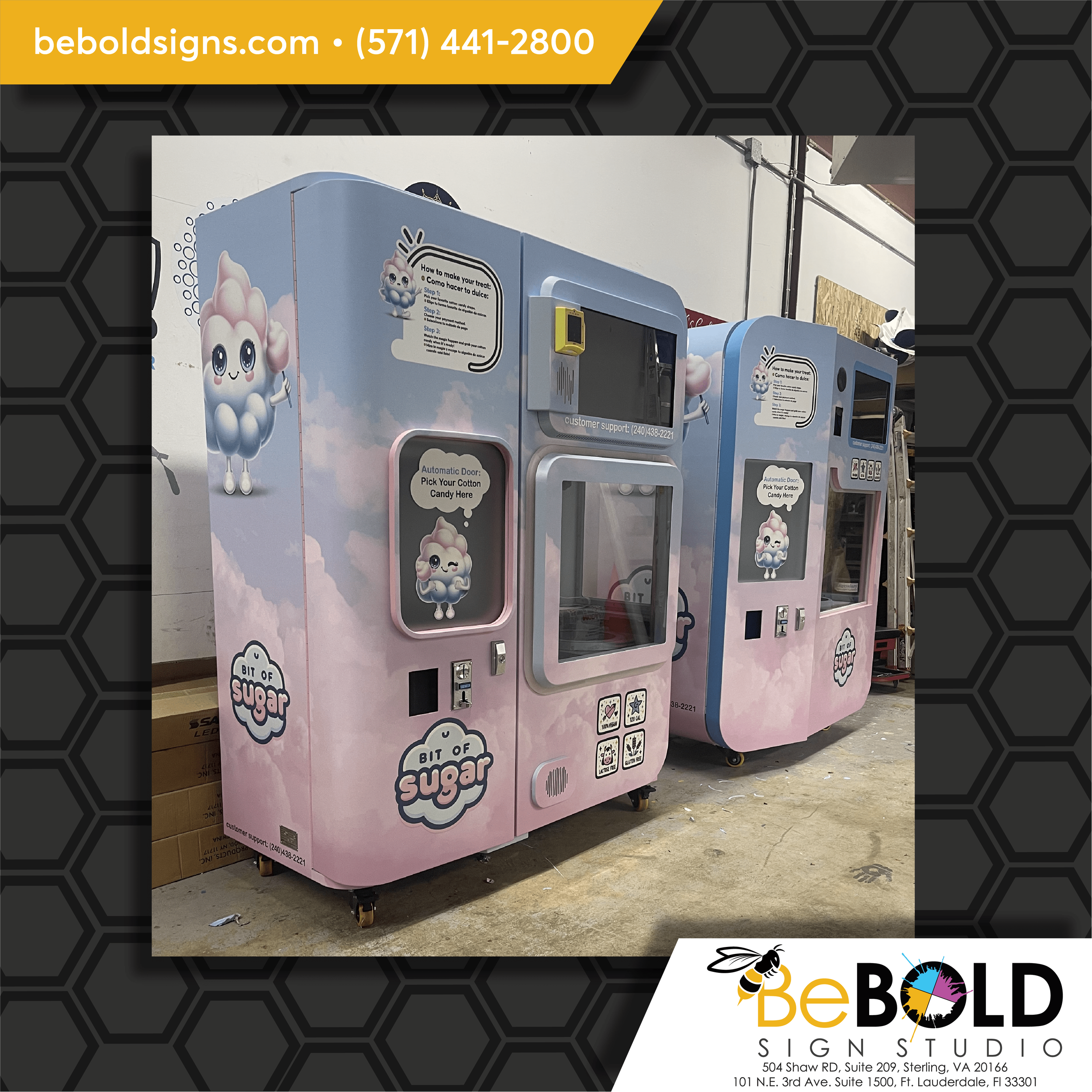 These vending machines were difficult to make production files for due to the curves and irregular shapes. Due to the unique shapes, I had to coordinate with the installers on how they wanted the files produced.